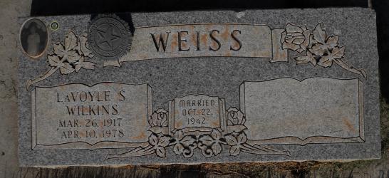 - [S5092] Find A Grave: Roosevelt Memorial Park, Roosevelt, Utah, LaVoyle S Wilkins Weiss, created by Marne tucker, added May 2012, memorial number 90260973.
