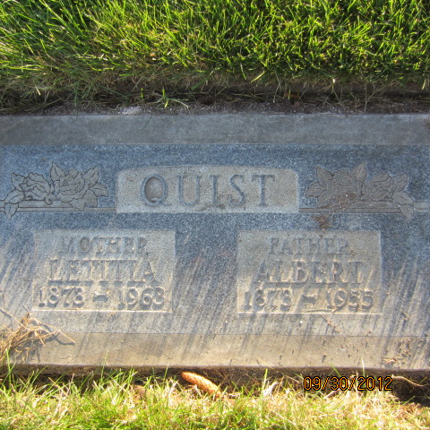 Born in Salt Lake City on August 25, 1915, to Albert Quist and Letitia Neff Quist. He graduated from Granite High School and attended the University of Utah.