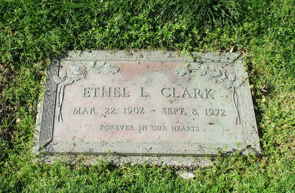 - [S3964] Find A Grave: Oakmont Memorial Park, Lafayette, California, Ethel L Clark, created by Grothmann, added Mar 2017, memorial number 176899979.