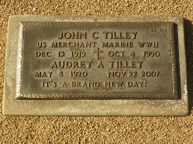 - [S5353] Find A Grave: National Memorial Cemetery of Arizona, Phoenix, Arizona, Audrey A Tilley, created by D. & J. Altman, added Nov 2007, memorial number 23126854.