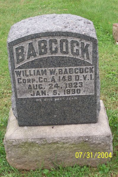 - [S5469] Find A Grave: Oak Grove Cemetery, Marietta, Ohio, William W Babcock, created by Honoring our ancestors, added Aug 2006, memorial number 15183964.