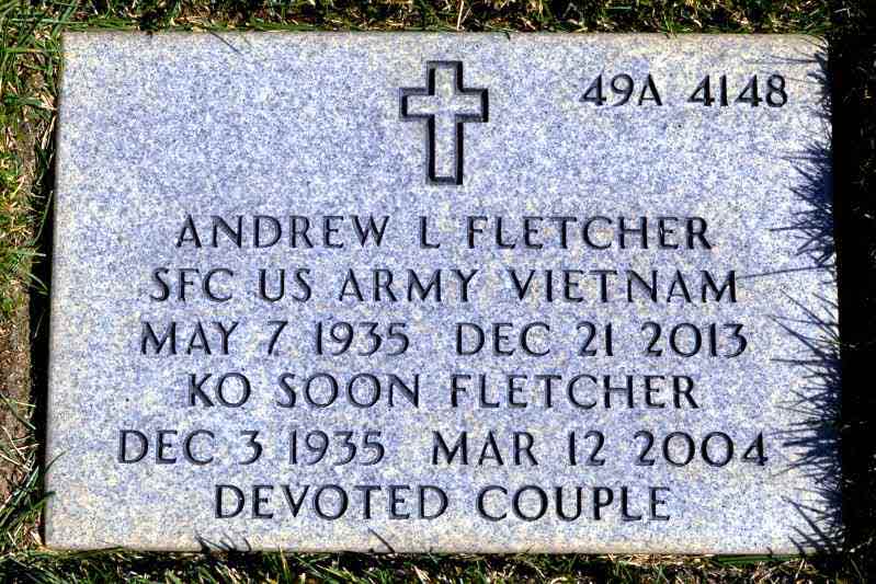- [S680] Find A Grave: Riverside National Cemetery, Riverside, California, Ko Soon Fletcher, created by Find A Grave, International Wargraves Photography Project, added Jul 2011, memorial number 72622225.
