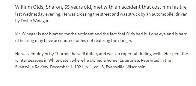 - William J Olds died on 16 November 1921 in Walworth County, Wisconsin, at age 67.1