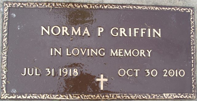 Norma Phyllis Griffin was the daughter of Grace Ethel "Wilmot" and Norman Volney Horton. Norma was the fourth of five children, and baptized May 14th, 1928 at University Christian Church in Los Angeles. She graduated from Manual Arts High School in 1936.