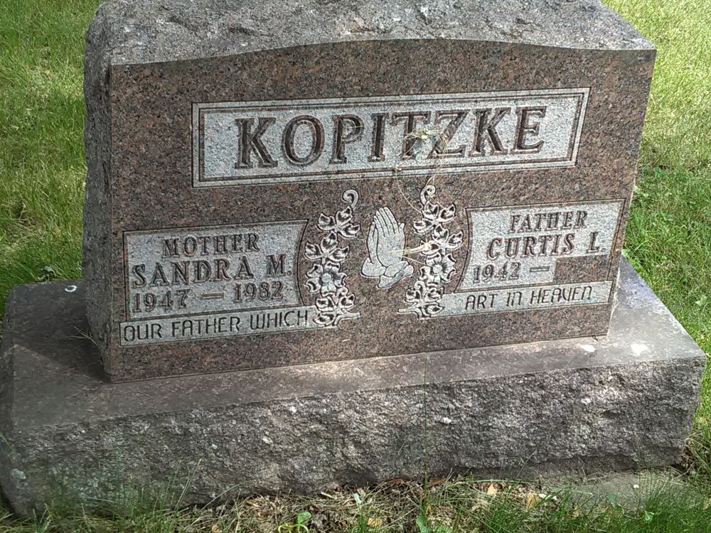 - [S5877] Find A Grave: Benton County Cemetery, Saul Rapids, Minnesota, Sandra M Kopitzke, created by Scout731, added May 2016, memorial number 163375118.