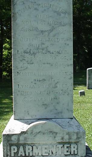 - [S5625] Find A Grave: Pittsfield Village Cemetery, Pittsfield, Vermont, Lyman Parmenter, created by George Varney, added Aug 2009, memorial number 40856429.