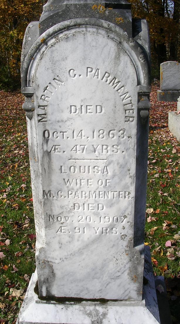 - Louise married Martin C Parmenter, son of Martin C Parmenter and Polly Hall, estimated 1841.1,2