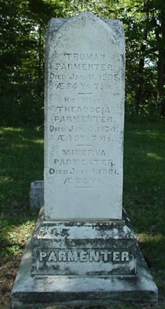 - [S5625] Find A Grave: Pittsfield Village Cemetery, Pittsfield, Vermont, Trumanl Parmenter, created by George Varney, added Aug 2009, memorial number 40834359.