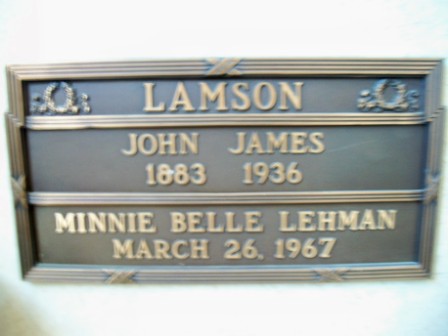 - [S2763] Find A Grave: Forest Lawn Memorial Park (Glendale), 1712 S Glendale Ave, Glendale, California, Minnie Belle Lehman Lamson, created by Find A Grave, Chris Mills, added Feb 2012, memorial number 85450060.