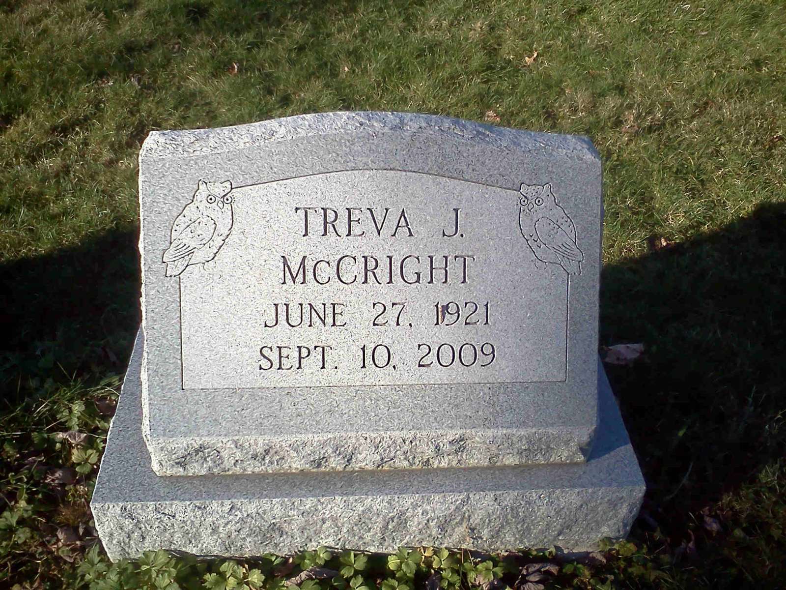 A funeral and committal service will be held Tuesday for Treva J McCright, formerly of 13 E Ridge Ave, Greenville. She passed away at 2:46 pm Thursday (9-10-09) in White-Cliff Nursing Home, Hempfield Township. She was 88.