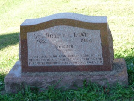 Private funeral services were held at Fiss &; Bills funeral home Friday afternoon at 2 o'clock, followed by services at the grave at Riverside cemetery for Sgt. Robert E. DeWiU, 21, son of Mr. and Mrs. O. E. DeWitt, 204 Jefferson avenue. The Rev. James A. Daum officiated and the ritual of the Veterans of Foreign Wars organization was performed by the local Florian Lamport post, members of which acted as pallbearers.