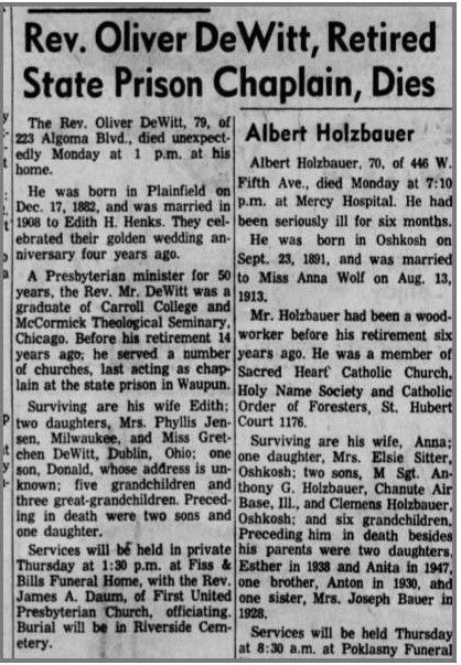 Miss DeWitt, a librarian who moved to Omro from Ohio four years ago, was a member of the Daughters of the American Revolution and the Omro Women's Service League.