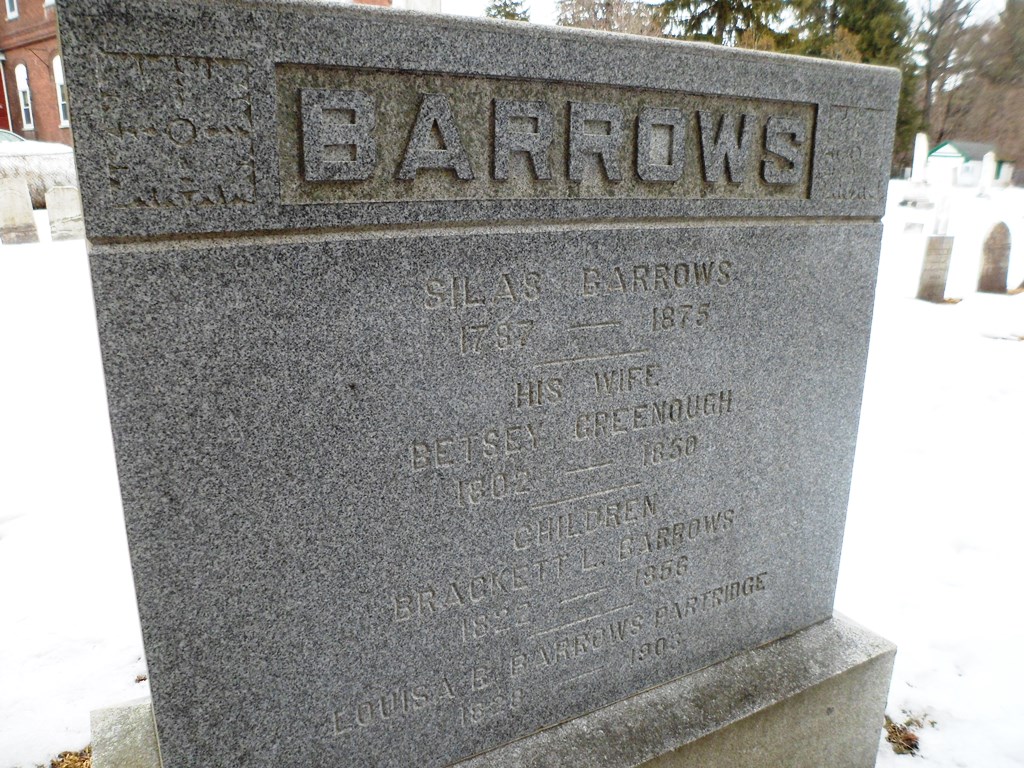 - [S6058] Find A Grave: School Street Cemetery, Lebanon, New Hampshire, Silas Barrows, created by Fran Hanchett, added Feb 2013, memorial number 105933710.