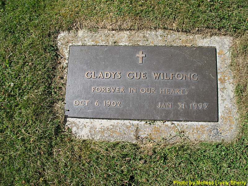 - [S6097] Find A Grave: Woodbine Cemetery, Puyallup, Washington, Gladys Gue Wilfong, created by Melissa (Lively) Sherry, added Mar 2011, memorial number 66825651.
