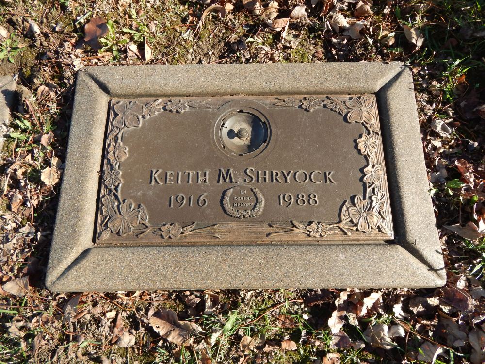 - [S6138] Find A Grave: Memorial Park Cemetery, Kansas City, Missouri, Keith M Shryock, created by gingels, added Nov 2016, memorial number 172244280.