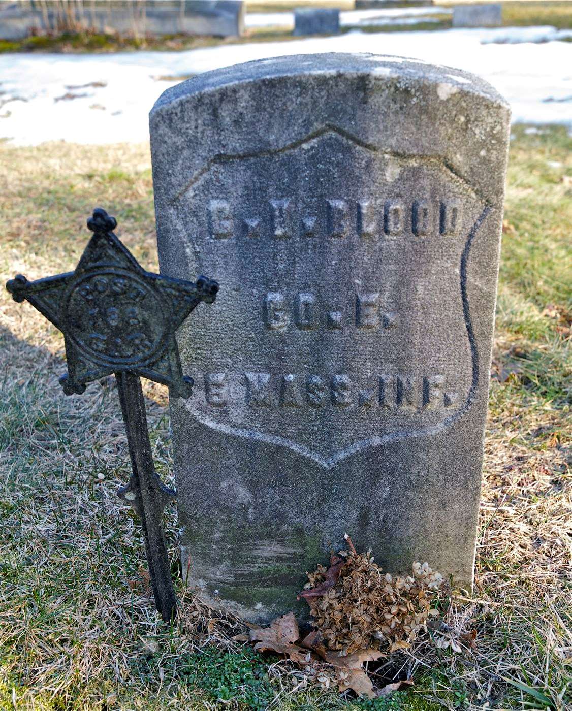 - [S6175] Find A Grave: Mount Hope Cemetery, West Acton, Massachusetts, Charles Henry Blood, created by Patrick, added Mar 2013, memorial number 107564611.