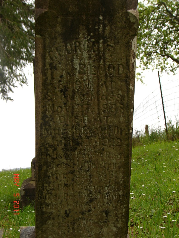 - George Frances Blood was born on 27 November 1838 in Stow, Massachusetts.1,2