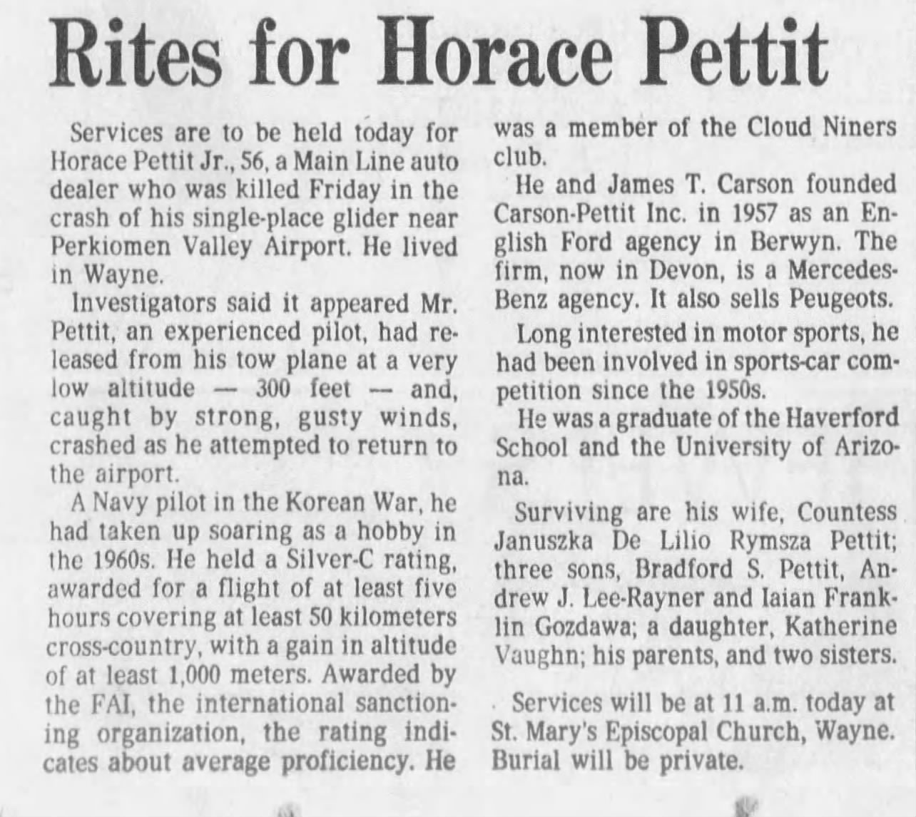 - [S6610] The Philadelphia Inquirer, Philadelphia, PA, Newspaper, Horace Pettit obituary notice, published 15 May 1984, p 6-B.