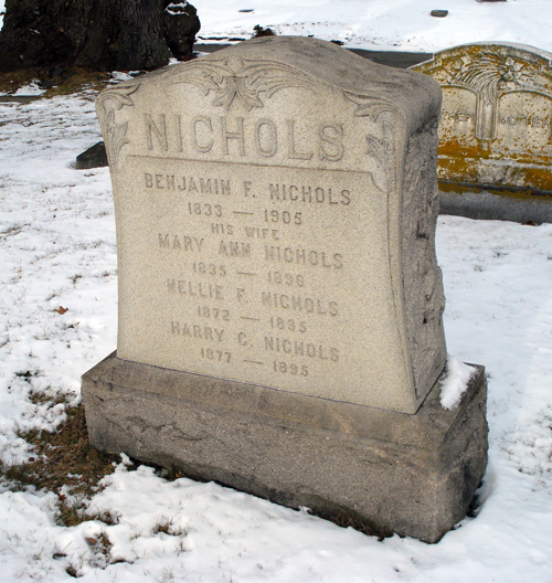 - [S6236] Find A Grave: Woodlawn Cemetery, Everett, Massachusetts, Benjamin F Nichols, created by Lynette Groves, added May 2013, memorial number 109894063.