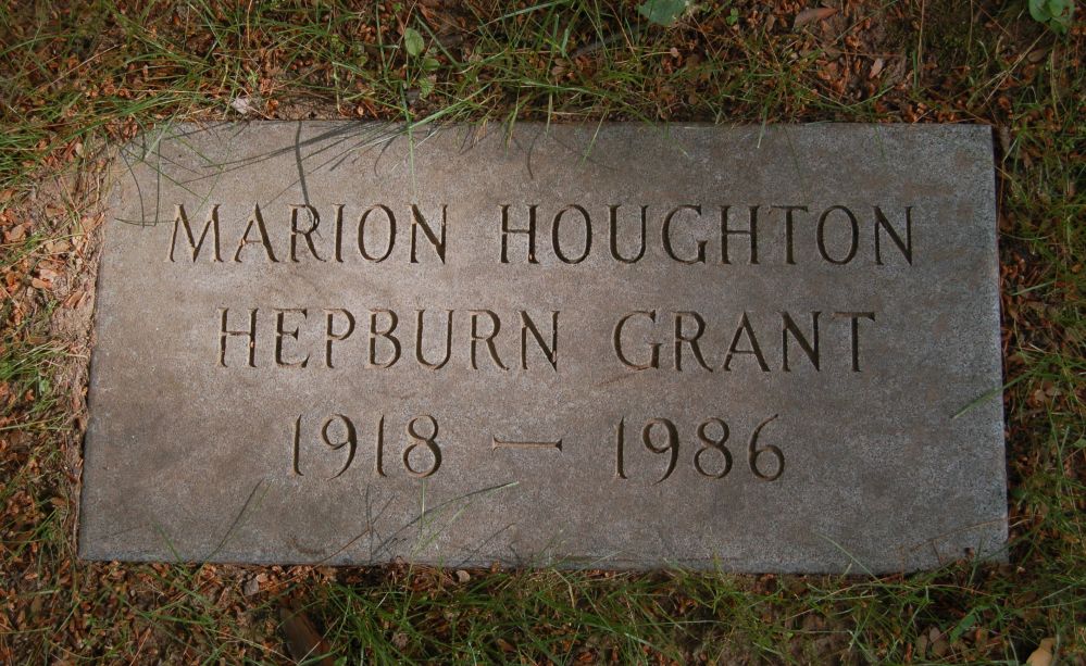 - [S2548] Find A Grave: Cedar Hill Cemetery, Hartford, Connecticut, Marion Houghton Hepburn Grant, created by Marcia T, added Dec 2003, memorial number 8160846.
