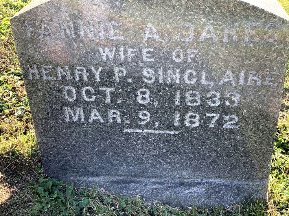- [S7158] Find A Grave: Hope Cemetery, South Corning, New York, Frances Augusta Oakes Sinclaire, created by Kathleen Oster, added Mar 2014, memorial number 126533801.
