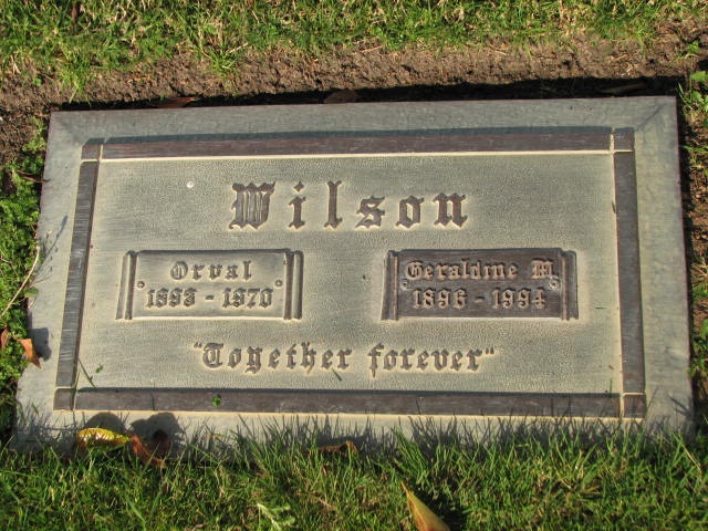 - [S3117] Find A Grave: Green Hills Memorial Park, Rancho Palos Verdes, California, Orval Wilson, created by GreenHills Stones Calling, Warren Weimer, added Jun 2011, memorial number 72156666.