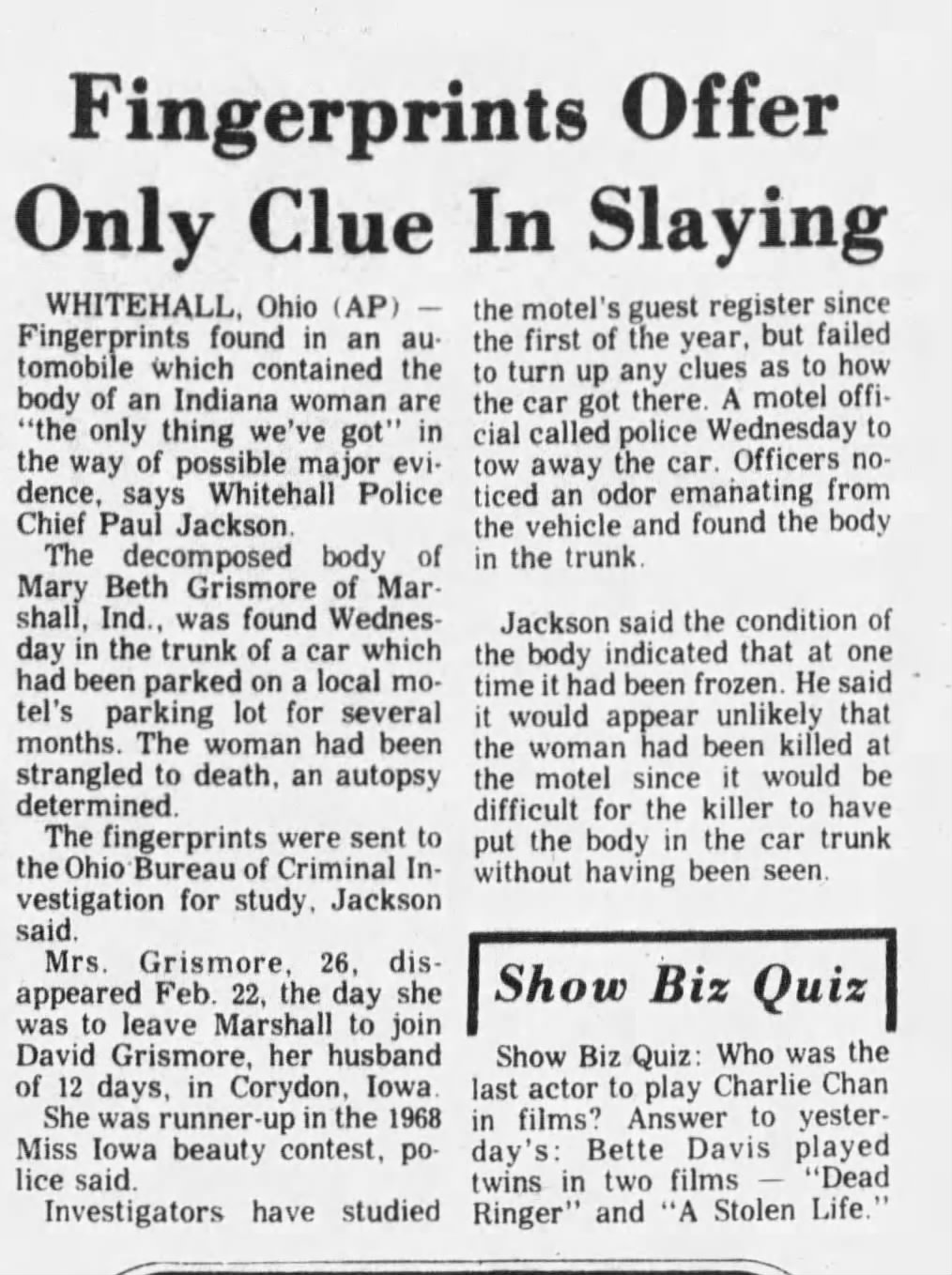 (Transcription - the newspaper print is too small)