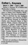 - [S8626] Statesman Journal, Salem, OR, Newspaper, Esther L Keyzers obituary notice, published 10 Jun 1989 p 10.