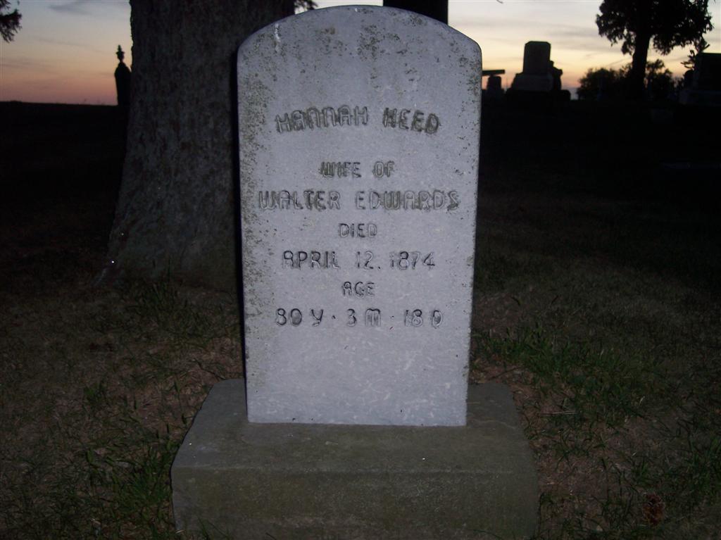 - [S4386] Find A Grave: Sugar Ridge Cemetery, Leipsic, Ohio, Hannah Heed Edwards, created by DLBolman, added Sep 2010, memorial number 58251808.