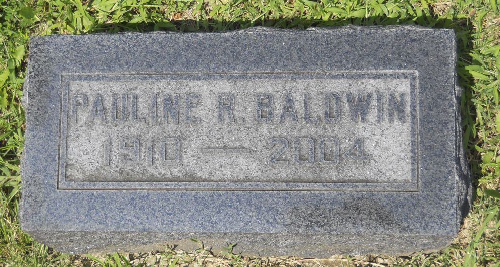 - [S6624] Find A Grave: Maple Park Cemetery, Springfield, Missouri, Pauline R Baldwin, created by Lyle & Marsha, added Sep 2003, memorial number 116899815.