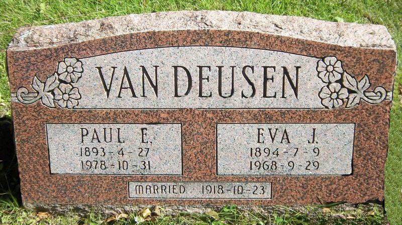 The former Eva Burdett was born July 9, 1894 in Harbor Springs and married Paul E. VanDeusen on October 23, 1918 in Detroit