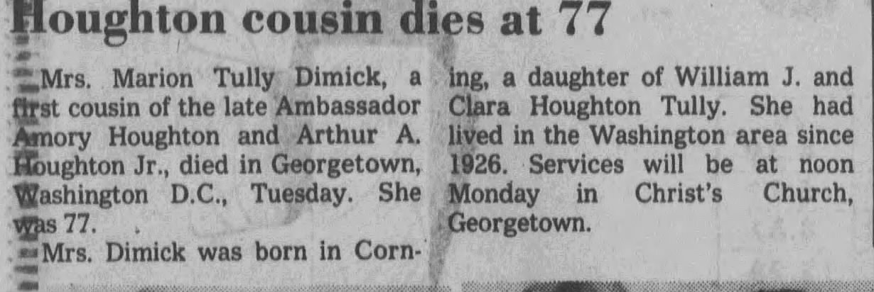 On June 9, 1951 Marion Tully Hoover married John Dimick at New York.