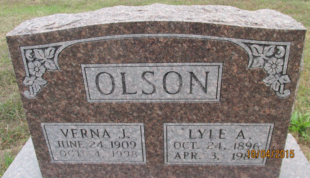 - Verna married Lyle A Olson estimated 1934.3,4
