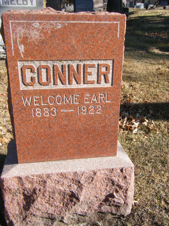- [S7063] Find A Grave: Glendale Cemetery, Des Moines, Iowa, Welcome Earl Conner, created by Katie Lou, added Dec 2008, memorial number 32142330.