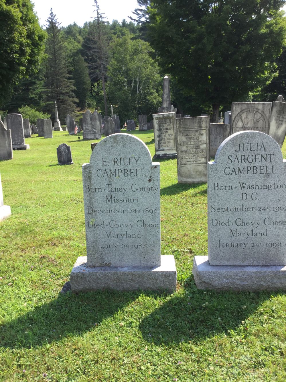 - [S7150] Find A Grave: Maple Hill Cemetery, Dorset, Vermont, E Riley Campbell, created by Karen Huerta, added Aug 2015, memorial number 150084909.