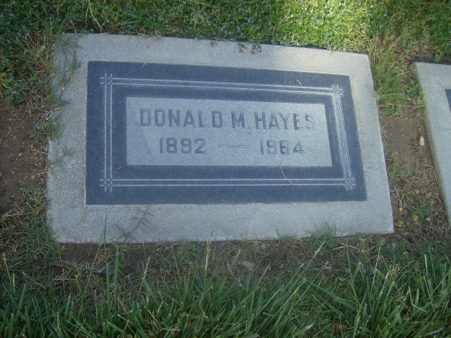 - [S7190] Find A Grave: Hillside Memorial Park, Redlands, California, Donald M Hayes, created by Barbara LeClaire, added Jul 2007, memorial number 20681115.