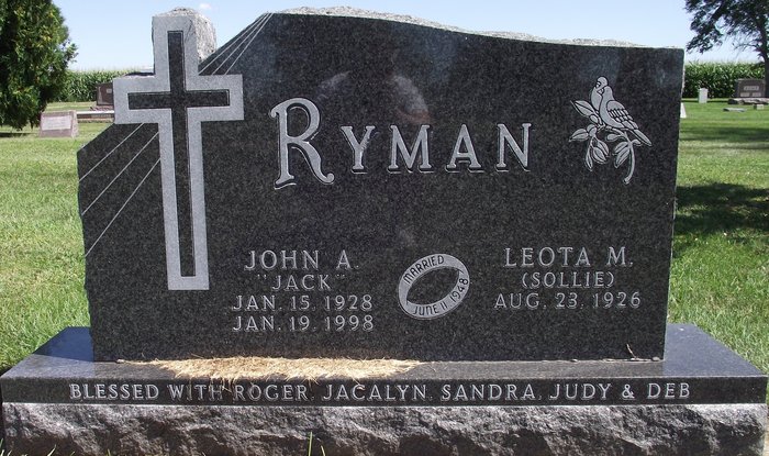 Leota was preceded in death by her husband Jack, in 1998; an infant son, Roger; her parents; and her brother, Virgil Sollie.