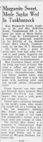 Marguerite Saylor, of Stark Road, Tunkhannock, passed away Tuesday, Feb. 14, 2012, at Golden Living Center. Born in Endicott, N.Y., on Sept. 25, 1928, she was the daughter of the late DeWilton and Cecelia Kochmer Sweet.
