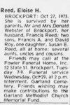 - [S7459] Democrat and Chronicle, Rochester, NY, Newspaper, Eloise H Reed obituary notice, published 28 Oct 1975 p 14.