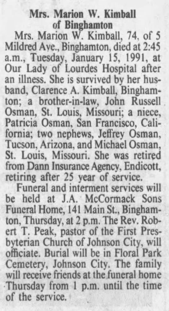- [S7030] Find A Grave: Floral Park Cemetery, Johnson City, New York, Marion Louise Wintermute Kimball, created by Paul R, added Oct 2010, memorial number 60307633.