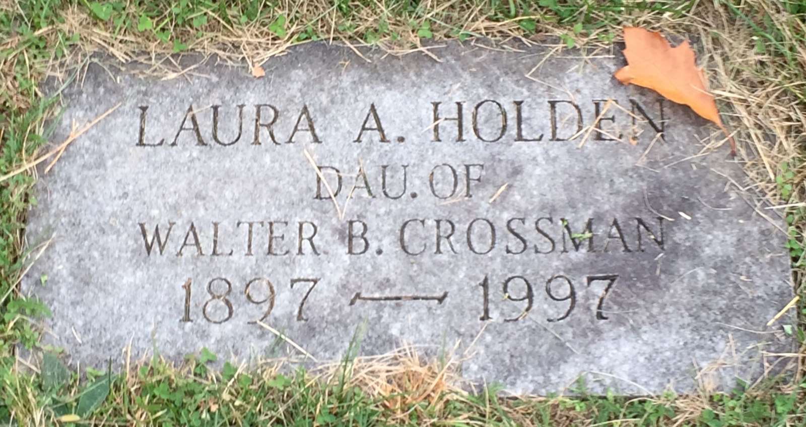 - [S7352] Find A Grave: Oak Hill Cemetery, Brewer, Maine, Laura A Crossman Holden, created by Dale & Patti, added Feb 2013, memorial number 105266764.