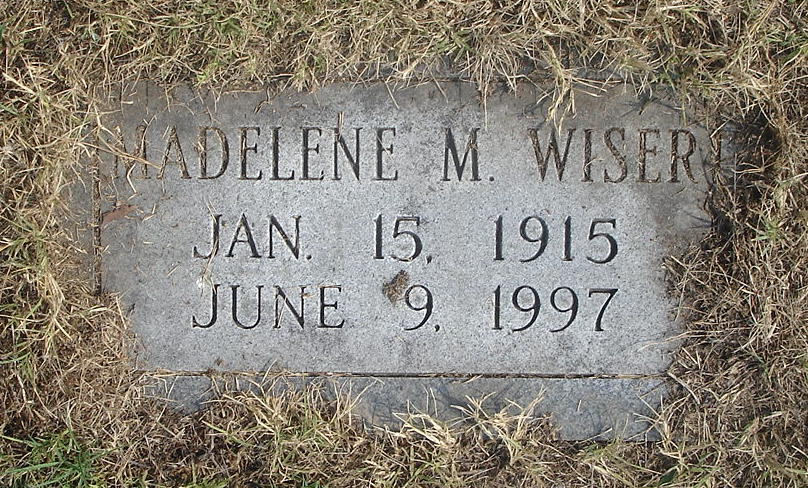 - [S7351] Find A Grave: New Hollywood Cemetery, Eliabeth City, North Carolina, Madelene M Wiser, created by Steve Poole, added Jun 2007, memorial number 20177710.
