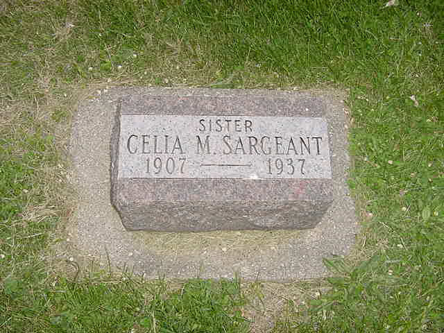 - [S2190] Find A Grave: Knoxville Cemetery, Knoxville, Illinois, Celia May Sargeant, created by Marc H Young, added Mar 2012, memorial number 86247350.