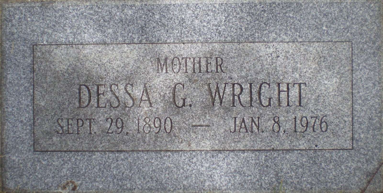 - [S7447] Find A Grave: Washington Heights Memorial Park, South Ogden, Utah, Dessa G Wright, created by Don Calhoun, added Aug 2014, memorial number 134144824.