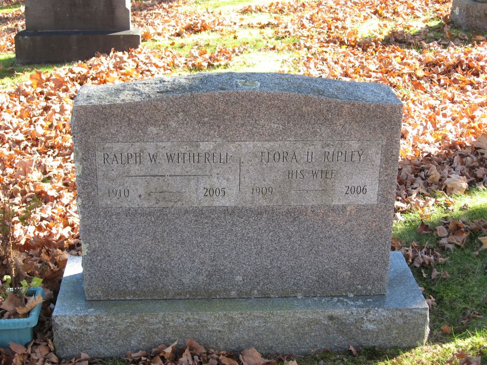 Besides her beloved husband Ralph, she was predeceased by a son, Roland E. Witherell in 1992, her sisters, Janet Shepardson, Hazel Welch, and Virginia Graves; a nd a brother, George Ripley.