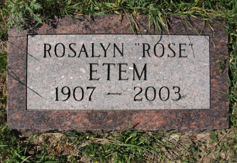 South Lead Cemetery records state that his late residence was Newport Beach, California; buried May 14, 1966; funeral under the direction of Cleo Wells of Deadwood; nearest relative or friend - widow - Rosalyn V. Etem of 1991 Costa Mesa, Newport, California.