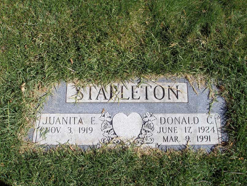 Juanita is a daughter of Robert Ralph Sargent and Bulah Georgia Stillwell. She is one of eleven children. The family moved around quite a lot from Iowa to Missouri to Oklahoma and finally to Utah. Juanita married Donald Cecil Stapleton on February 11, 1951.