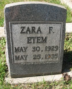 Rounsevell Mortuary records of Lead state that Zara Fern Etem was born in Deadwood, South Dakota; died at St. Joseph's Hospital of acute nephritis; age 5 years 11 months 25 days; father - Ahmed Etem, born Bulgaria; mother - Raalya Crossman, born South Dakota; funeral at the Presbyterian Church on May 28, 1935