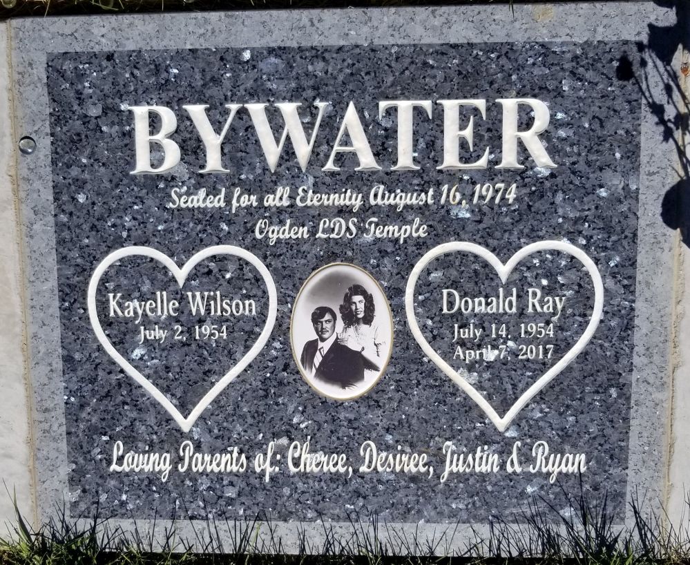 Donald Ray Bywater, 62 passed away April 7, 2017 at his home surrounded by his family. Donald was born July 14, 1954 in Rupert, Idaho to Leon and Ruby Bywater. He was married to Kayelle Wilson on August 16, 1974 in the Ogden Temple.