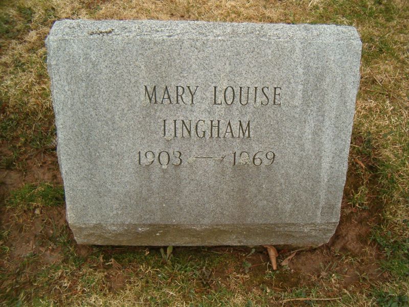 - [S7580] Find A Grave: Glenwood Cemetery, Lockport, New York, Mary Louise Lingham, created by Jen Neithe, Rachel Keller, added Mar 2018, memorial number 187887137.